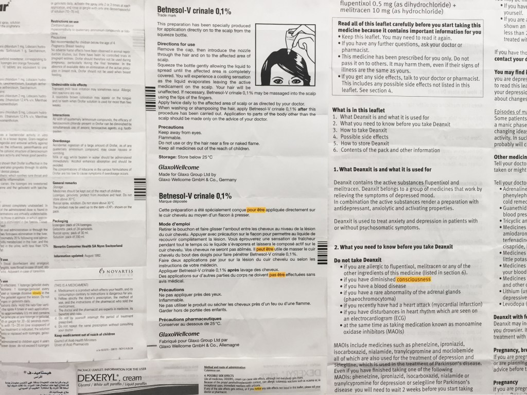 Because of the way conventional medicine is treating symptoms in isolation, the installation is a unified mind-body manifestation and a way back to the core of the artist’s malfunction and his vital needs. These painted words are the artist’s directions for a better quality of life, converting the monotonous pharmaceutical instructions into random and humorous, yet meaningful poetry.